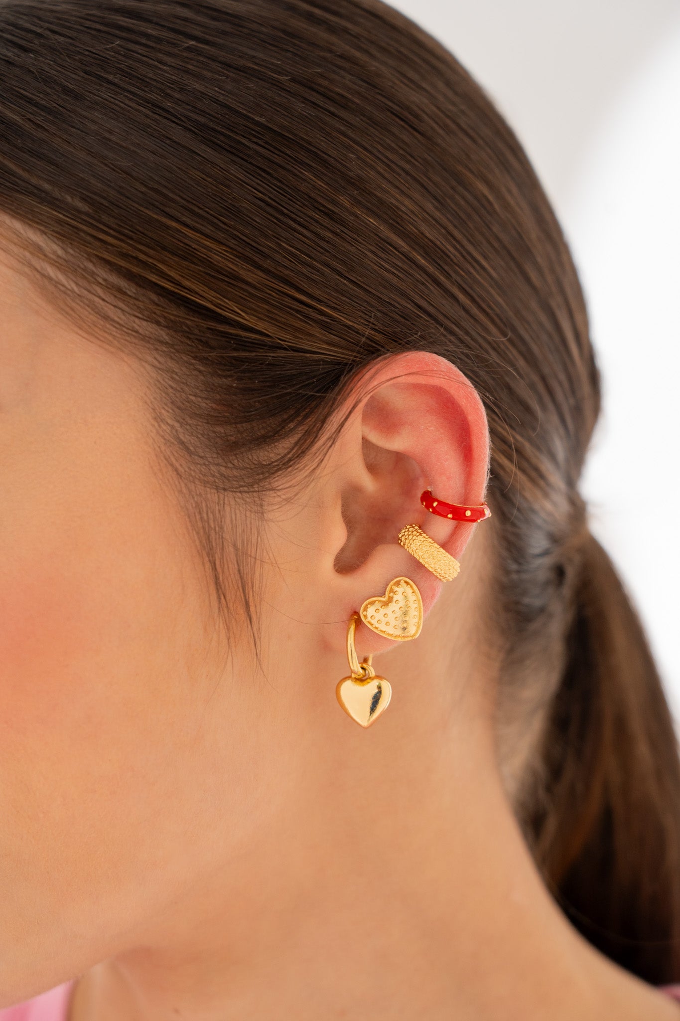 - Incluye: 1 par de candongas 2 en 1 corazón , 1 par de topos corazón y 2 earcuff.